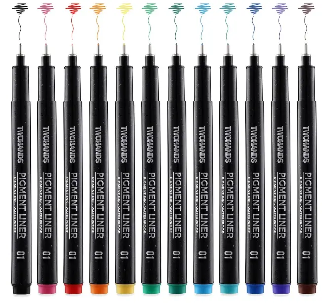 TWOHANDS Drawing Micro Art Pens feature a precise 0.25 mm fine point that delivers clean, controlled lines for detailed illustration and technical drawing. The waterproof, no-bleed pigment ink makes them ideal for watercolor layering, sketching, anime, and manga work. With 12 assorted colors and consistent ink flow, this set gives artists reliable tools for both fine details and creative expression